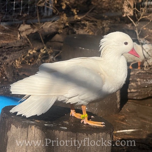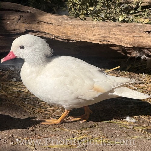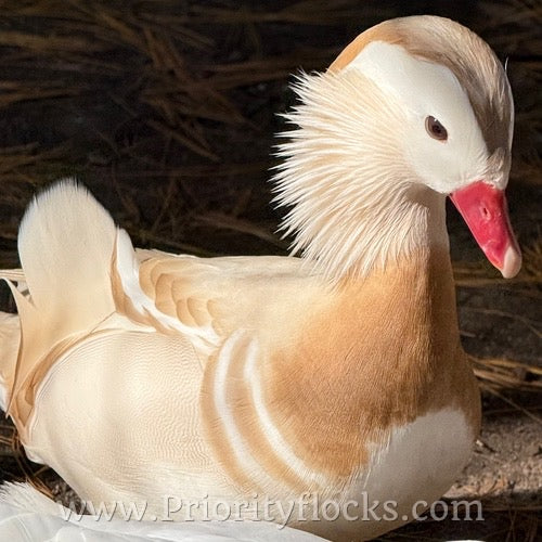 Unique Feature: Solid white plumage with classic Mandarin structure